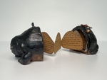 As a driven ceramics student, I began my first bookbinding class this year by asking myself, “how could I combine my love for clay with book arts?” The answer appeared as I came across accordion-style books in the UCF Library Special Collections. As I peered upon those books, my thoughts suddenly imagined the slinky dog toy, and that image sparked a eureka moment. What if a book could take a similar shape, something sculptural and crafted from clay? These ideas unfolded into Book of Breviceps, a personal exploration of material and form with reverence to one of my favorite frog species. For this book, my journey began with the idea of a horizontal, egg-shaped jar that would clasp together using beaded wax thread. The binding was entirely hand-built using coil and pinch techniques, coated with red and black iron oxide washes, and glaze fired in the UCF Ceramics salt kiln. I then pieced that together with moss sheets and (very carefully) handwritten, illustrated pages. This book acts as an light introduction to the wonderful Breviceps Fuscus, and aims to feel like a warm meeting with a peculiar, little neighbor.