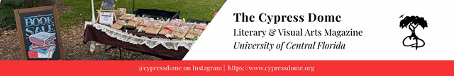 The Cypress Dome Society (CDS) offers an outlet for artists at UCF. We chose to name ourselves after the beautiful cypress dome ecosystem that exists on the UCF campus. In the same way that cypress domes create an environment based in biodiversity and rich land, we hope to foster a space that promotes diversity and rich creative work for students. We set our roots in the deepest parts of the literary community and surround ourselves with students eager to participate in the arts. Every year, we engage with our community by encouraging students to submit to our literary magazine, The Cypress Dome. Our intention is to remind artists on campus that their writing and artwork are a critical part of UCF. The Cypress Dome Society gathers various styles and genres of work from writers and artists with different backgrounds, cultures, and identities.