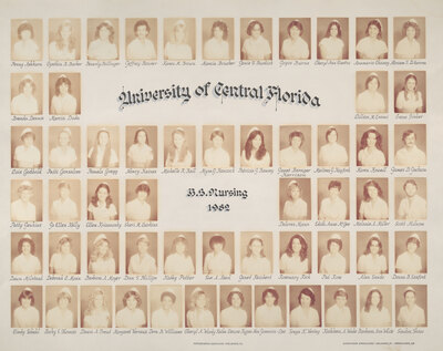 Class composites of graduates of the University of Central Florida College of Nursing from 1982 to 2024. The Department of Nursing at Florida Technological University (now the University of Central Florida) was established in 1978. The first students of UCF’s BSN program graduated in 1981. The program became the School of Nursing in 1995 and was designated the College of Nursing in 2007, becoming UCF’s eleventh college.