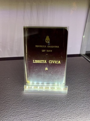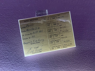 Artifacts Associated with Evita Perón: Voting Card and National Identity Booklet. Evita House, Buenos Aires 1
