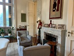 Second floor sitting area, with fireplace and tapestry. Villa Ocampo (built 1891), former home of Victoria Ocampo, a significant figure in Argentina's cultural and artistic life. The house was fully restored in 2003. San Isidro, Buenos Aires Province.