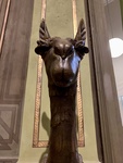 A sculpture featuring an interesting animal head stands prominently in the UCA Museo de la Plata. This artwork adds to the historical atmosphere of the museum.