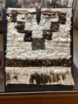 A traditional textile piece is on display at the UCA Museo de la Plata in Buenos Aires. The artwork features intricate patterns made from various natural materials.