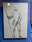 historical figure,armor,spear,display,education,Buenos Aires,history,artwork,culture,museum,Argentina,art,illustration,character,exhibition,sketch,heritage,old times,military,soldier