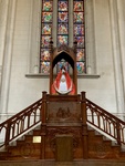 buenos aires,statue,stained glass,wooden platform,art,decoration,architecture,history,culture,church,craftsmanship,light,color,designs,prayer,building,worship,interior,seats,traditions