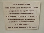 This plaque commemorates Sister Maria Ludovica de Angelis and highlights the date and significance of her beatification in Buenos Aires. Visitors to the UCA Museo de la Plata can read the details.