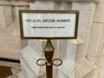 A sign stands in the chapel of the Santisimo Sacramento at the UCA Museo de la Plata, indicating a space reserved for prayer and meditation activities.