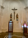 church,buenos aires,museum,sculpture,religious figures,architecture,UCA,interior,crucifix,lights,decoration,history,art,culture,monument,worship,faith,expression,devotion,tradition