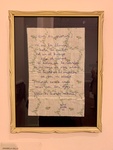 A handwritten poem is framed and displayed in the UCA Museo de Arte Popular. It reflects personal thoughts and artistic expression, showcasing local talent and creativity in Buenos Aires.