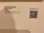 A display features a special mention award for a textile art piece by Mariana Cvik at the XVII Textile Art Salon in Buenos Aires. A QR code offers more information about the artwork.