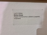 Lucy Frias presents her work titled Entre-lineas at UCA Museo de Arte Popular in Buenos Aires. The piece explores monochrome paper and printed materials in an artistic manner.
