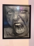 An artwork featuring a close-up view of an expressive face, capturing intense emotion. This piece is located at UCA Museo de Arte Popular in Buenos Aires, Argentina, showcasing local talent.