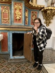 Howard, Wendy, "Visitor stands by hidden entrance in UCA Fernando Church in Buenos Aires while keeping silent gesture" (2022). Fulbright Repository Argentina 2022 Images. 2396.