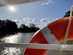 life buoy,water,Buenos Aires,UCA Tigre,sun,river,reflection,trees,safety,summer,landscape,outdoor,nature,sky,boating,leisure,recreation,travel,tourism,park