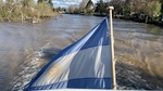 The river in Tigre, Buenos Aires, with the Argentine flag waving. The view highlights the waterway and the surrounding landscape, emphasizing the local culture.