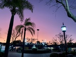 buenos aires,uca tigre,sunset,park,trees,lampposts,evening,light,activity,community,square,people,relaxation,blue sky,pink sky,outdoor,gathering,atmosphere,space,nature