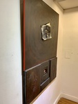 An art piece exhibited at UCA Tigre showcases a blend of materials and shapes on an interior wall. Visitors can appreciate different textures and the overall design in the gallery.
