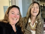 Two women are captured sharing laughter and enjoying each other's company at UCA Tigre in Buenos Aires. The atmosphere is warm and inviting as they connect over shared experiences.