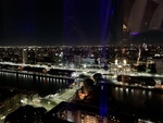 City lights illuminate Buenos Aires at night, showcasing buildings and the river. The view captures urban life and activity in the vibrant city.