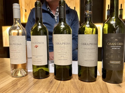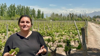 Visit to Bodega Familia Cassone winery in Mendoza, Argentina, with vineyard views and mountain backdrop