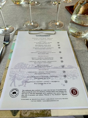 Dining experience at Lamadrid Estate Wines with a seven course menu highlighting local flavors and dishes