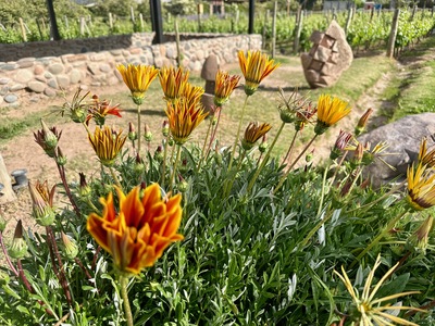 • Flowers blooming in the garden at Restaurant Casa Vigil El Enemigo, Mendoza, Argentina, highlighting the winery's landscape and natural beauty by Wendy Howard