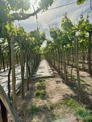 Exploring the vineyard path at Casa Vigil El Enemigo winery in Mendoza Argentina during a sunny day