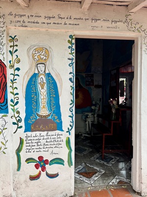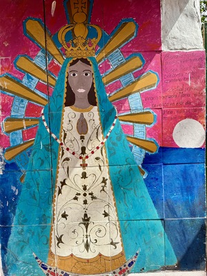 • Bright mural of Virgin Mary at Santuario del Gauchito Gil in Argentina, showcasing local artistry and spiritual devotion by Wendy Howard