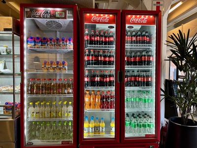 Beverage display in Student Union food court at Universidad Catolica Argentina in Puerto Madero, Buenos Aires