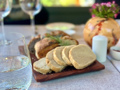 Bread and wine served at Lamadrid Estate Wines in Mendoza Argentina during a dining experience with local cuisine