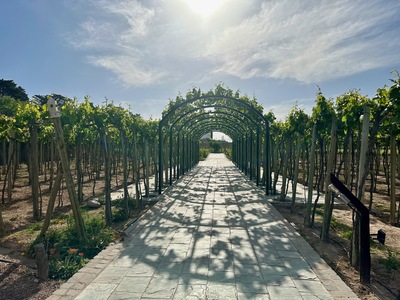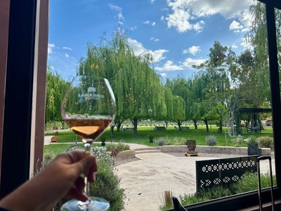 • Enjoying a bottle of Blanc de Noir 2020 at Lamadrid Estate Wines in Mendoza while surrounded by lush greenery by Wendy Howard