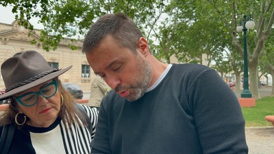 Enjoying a bottle of Los Bocheros Brut Blanc de Noir 2020 at Lamadrid Estate Wines in Mendoza Argentina