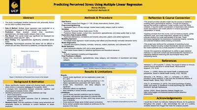 Model diagnostics, including residual plots and Q-Q plots, suggest that the assumptions of the regression model are reasonably satisfied. One thing I learned from this project is the importance of stress management in improving sleep outcomes. One limitation of the study is that the dataset is synthetically generated, meaning real world data would improve accuracy.