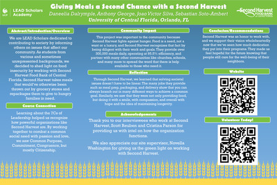 We completed this by individually volunteering for 15 hours. We did many tasks including but not limited to, examining donations, packaging meat, and boxing up meals. Throughout our time, our group learned about the different processes this organization uses. Based on concepts from our Intermediate Foundations of Leadership class and our interview with Sarah Heath, Volunteer Lead, we were able to reflect on how Second Harvest Food Bank prioritizes values from the Social Change Model and enacts on their mission/ vision statement to provide the upmost care for Central Florida residents.