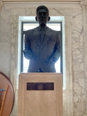 A detailed statue of Miguel Ángel García Méndez displayed in El Capitolio de Puerto Rico