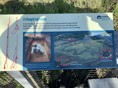 Information panel titled 'A Changed Landscape,' discussing the environmental and historical changes at Fort Mose.