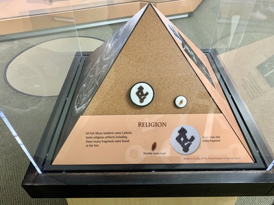 A display featuring rosary fragments associated with Catholicism at Fort Mose.