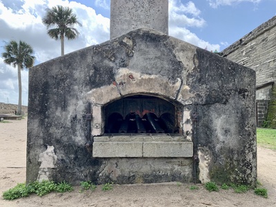 A hot shot furnace used for heating cannonballs, located within the Castillo de San Marcos grounds.